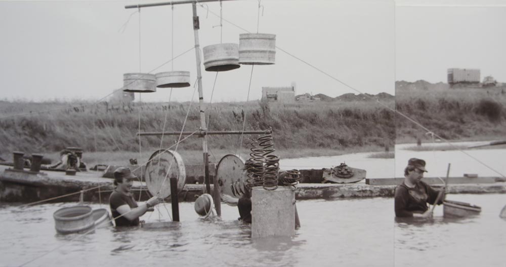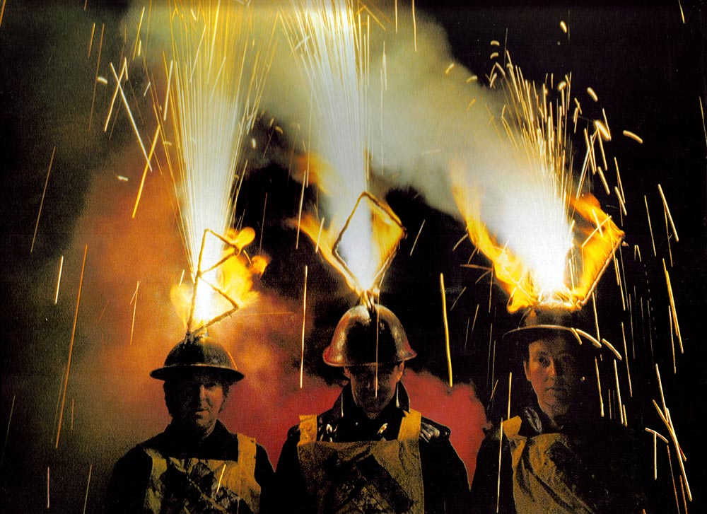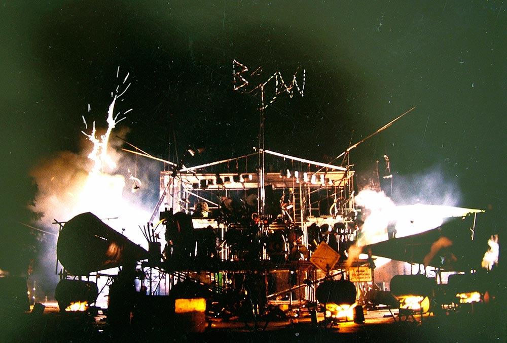 The Bow Gamelan grew from intimate indoor performances to large outdoor events which created new orchestras out of discarded materials around the world. They developed relationships with pyrotechnicians such as Wilf Scott, le Maitre Fireworks and El Diablo in Mexico and entered into a range of working relationships with artists and groups such as the sound poet Bob Cobbing, the American percussionist z'ev, Simon York of Miraculous Engineering, Tom Leadlay of the Thames Steam Launch Company, Eel Pie Marine, Ballooning World, historic re-creation societies and remote control helicoptor enthusiasts.