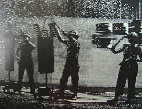 The name Bow Gamelan derives from the area of East London where they lived and worked and from the Indonesian metallophone ensembles. Their instruments were all specially constructed, mostly from scrap metal, electric motors and glass and produced a wide variety of sounds ranging from the deep, organ like sounds of the pyrophones through a gamut of percussive timbres and dynamic range. Both the sound sources and the musical structures generated were unusual because of the physical relationship between the way instruments work and how they had to be played.